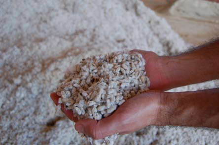Após colhido o algodão (capulho), ocorre o beneficiamento das fibras, separando-as do caroço. Essa semente oleaginosa, de elevado teor de óleo e envolvida pelo “linter” (fibra curta de algodão), apresenta-se com 89% de Matéria Seca em média.